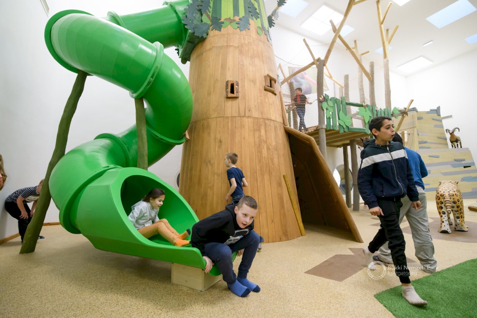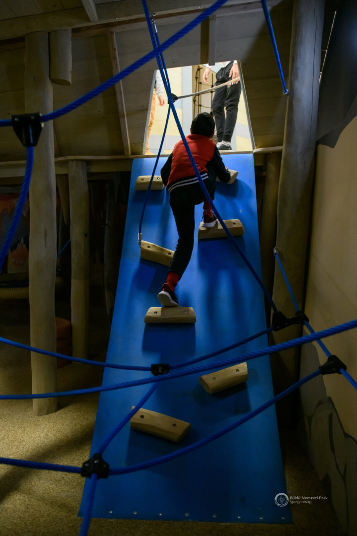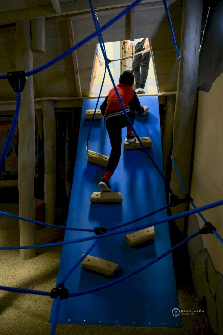 All this is not only graphically presented, but also through interactive interfaces and 2-/3D films. The topics are echoed in the visitor center's environmental education modules, which are aimed at elementary and high school age groups in the area. An employment room is available for them on these occasions. The Stone-age Karst Adventure indoor playhouse is designed for 4-14 years old. Children can descend into the "Doline pit", have an adventure in a multi-level tunnel system, while observing the wildlife of the Bükk Mountains. During their discoveries, they can meet the saber-toothed tiger, but they can also try archeology. The Bikkmakk playground is located in the square in front of the building, and the Pókfonal (Spider yarn) playground awaits the little ones in the park, which can be visited by purchasing a ticket.