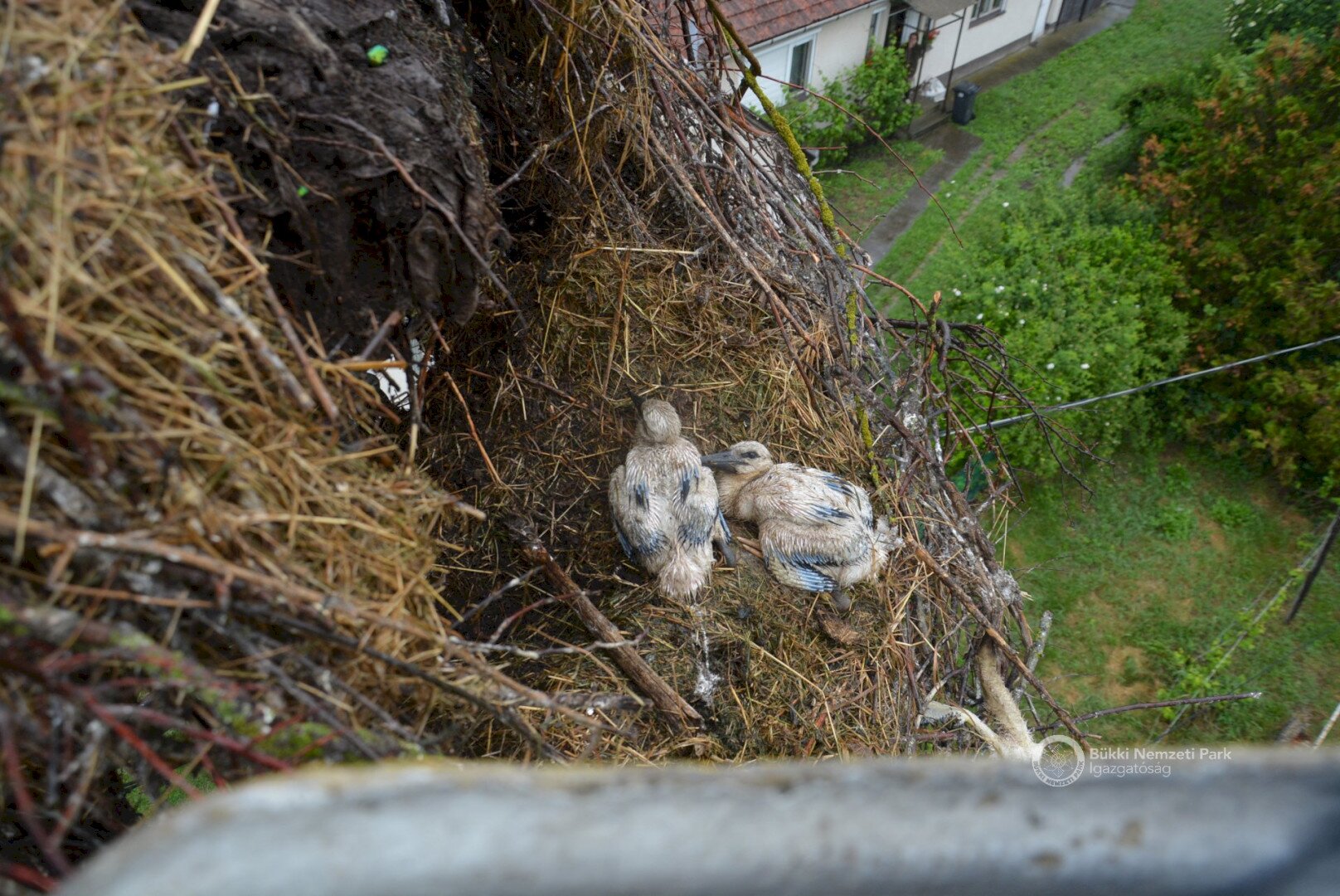 Négy nappal később már egészen takaros lett a tönkrement fészek, nem hiába: a gólyák ehhez jobban értenek nálunk. A két kis gólya szépen cseperedik azóta is, mert fiókák felnevelésében is jobbak az embernél, csak néha elkél egy kis segítség a hálózaton. De csak annyi amennyi éppen szükséges, aztán folytatják ők tovább a munkát.