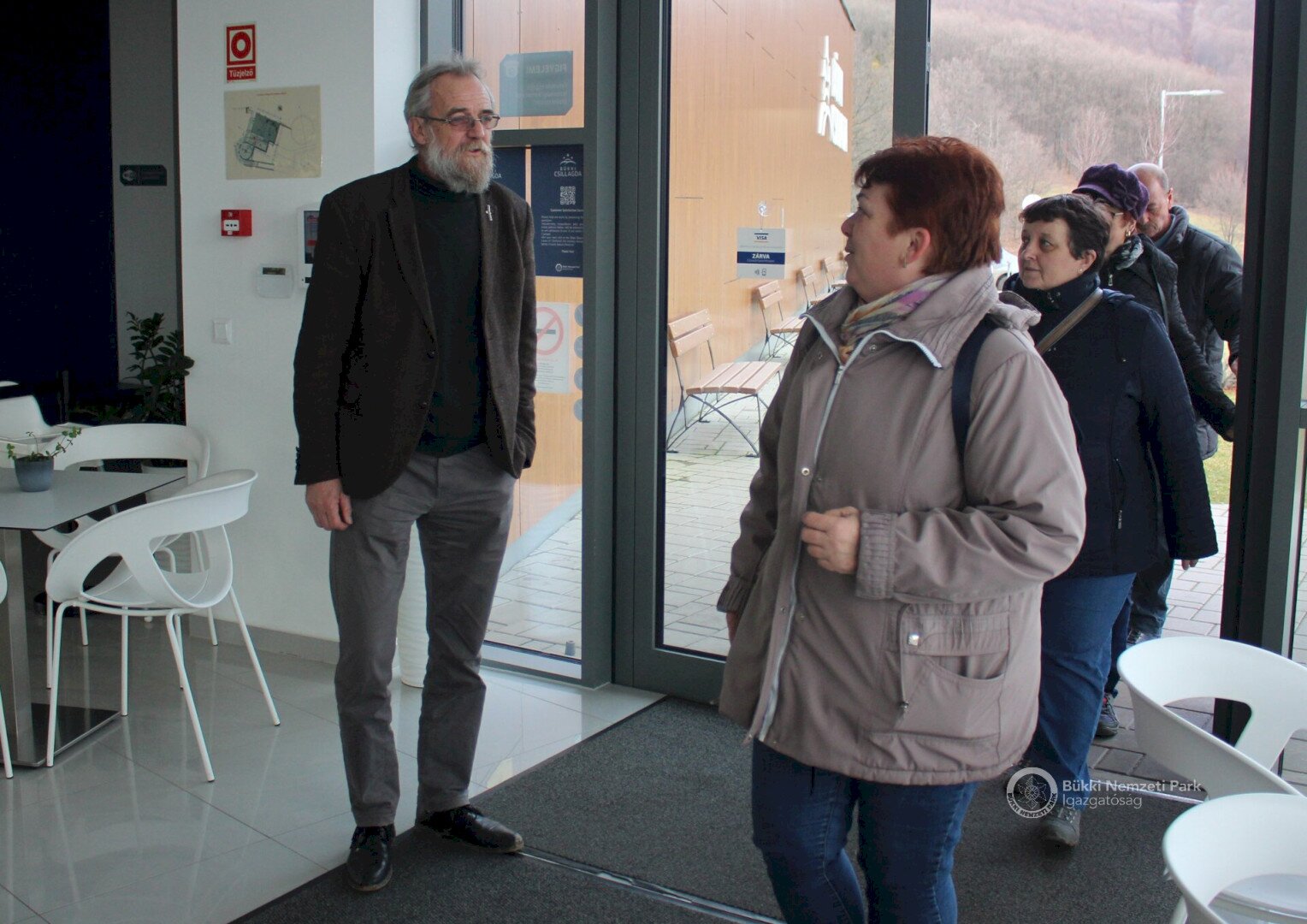 Kovács-Tanács Istvánné Erika Mórahalomról családtagjaival és barátaival érkezett hozzánk. Elmondása szerint már tavaly kinézték maguknak a Bükki Csillagdát, hogy ide mindenképpen szeretnének ellátogatni. Most egy téli pihenés során illesztették programjaik közé a BNPI csillagászati látogatóközpontját, s nagyon örült annak a kellemes meglepetésnek, hogy ő lett a 50 ezredik látogató. E különleges alkalomból számukra Szádeczky Kornélia, a BNPI Ökoturisztikai és Környezeti Nevelési Osztályának osztályvezetője nyújtott át egy ajándékcsomagot. A kellemes, napos időnek köszönhetően rajtuk kívül még többen is betértek január 11-én a Bükki Csillagdába - ezen a napon a belépőjegyek mellé mindenki kapott egy-egy hűtőmágnest is ajándékba.