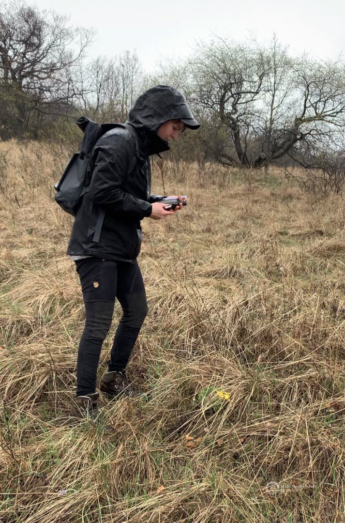 Thursday was a cliché day, as you would imagine in a national park. We drove to Kisgyőr and were let out on a slope there. Two volunteers, a GPS device, wild nature without any trails and rainy weather. Our task was to find spring Adonis anemones (Adonis Vernalis), mark them with the GPS device and write down the number of flowers at that spot. Finding the flowers felt a bit like an Easter egg hunt for grown-ups. For this reason, and because it was sloping terrain with partially impenetrable vegetation, we had difficulty bringing structure to our work.