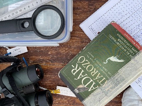 Jede Stunde kontrollierten wir die Netze, um zu schauen, dass die Vögel in Sicherheit waren und um ihnen einen kleinen Ring mit einer Nummer an die Beine zu machen. Das erleichtert das Erkennen und Zählen der Vögel. Es wurden die Federn, das Gewicht, der Fettanteil, das Alter, sowie das Geschlecht gemessen und wir notierten alles in einem Heft. Dort haben wir auch etwas die lateinischen Namen der Vögel gelernt.