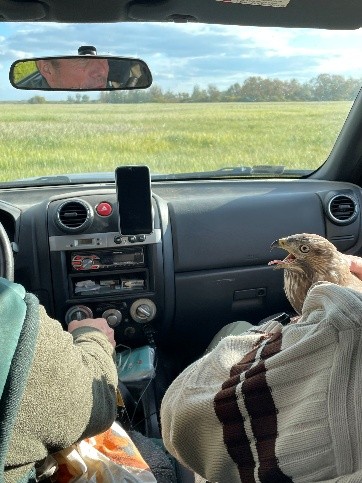 Wir haben auch ein größeres Netz für Greifvögel aufgestellt und hatten dann das Glück, einen Mäusebussard zu fangen! Das war sehr aufregend, denn der Vogel wurde im Auto und in den Armen von Istvan zu den Besuchern gefahren.